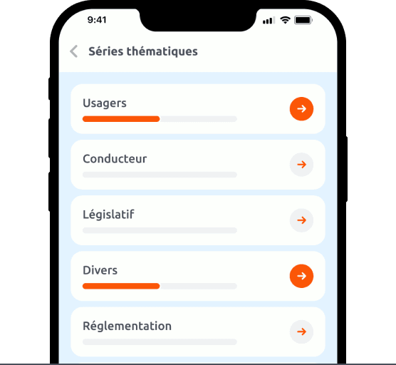 Vous pouvez vérifier vos connaissances et savoir quels points précis de vos leçons de code réviser (par exemple la sécurité routière, les règles de circulation, la signalisation…).